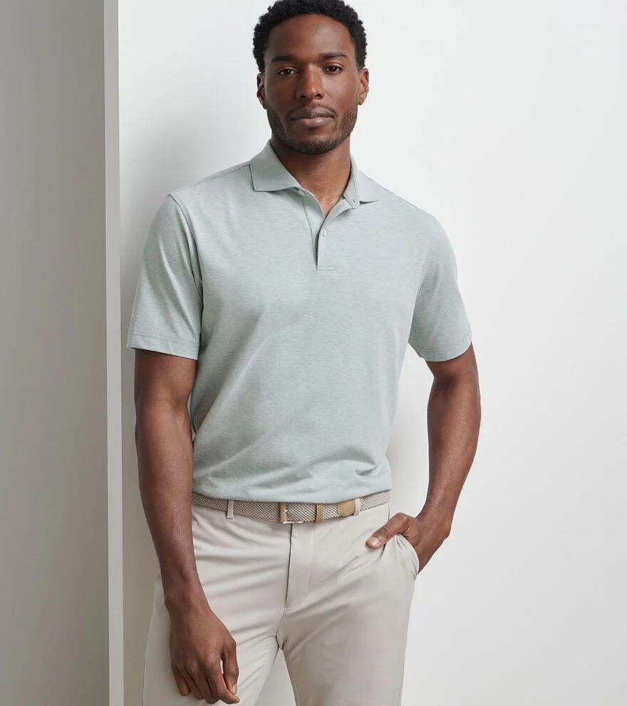 Our take on an all-around 12-month polo is the ideal blend of traditional and technical. A pima cotton base brings softness and classic texture, while blended performance yarns bring four-way stretch and keep you cool and dry. Designed in an Oxford piqué knit, it's finished with mother-of-pearl buttons and a signature reinforced spread collar.