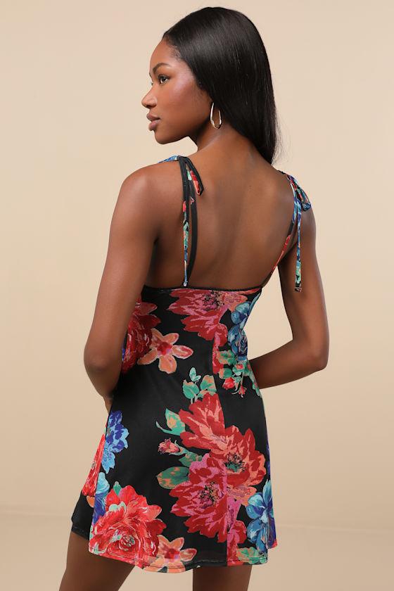 Summer date nights at dusk just got exponentially cuter thanks to this lightweight mesh mini, adorned with a classic floral print. Slender, tying shoulder straps support a triangle bodice with scalloped trim, while the empire waist silhouette continues into a cute A-line skirt.
