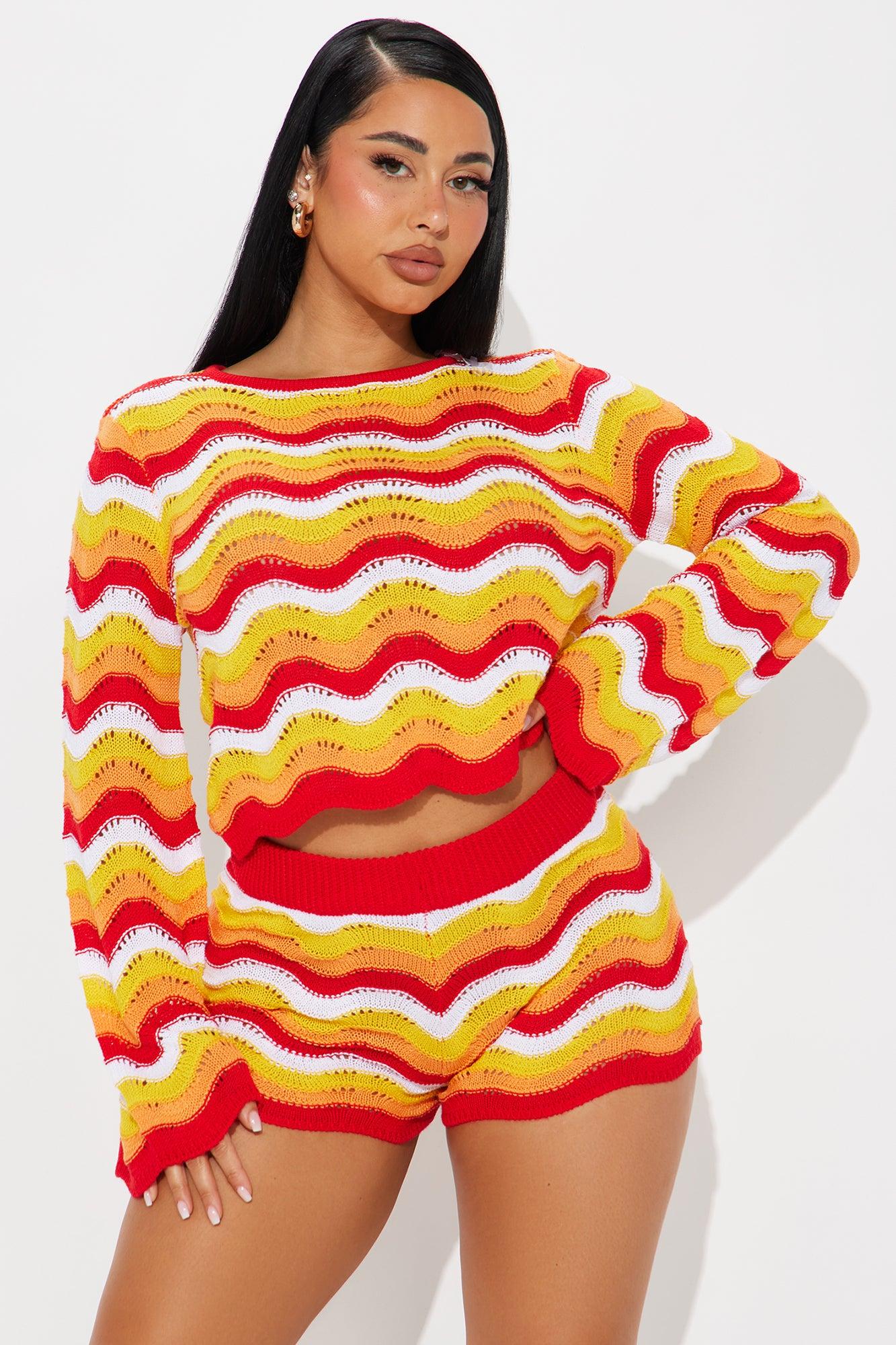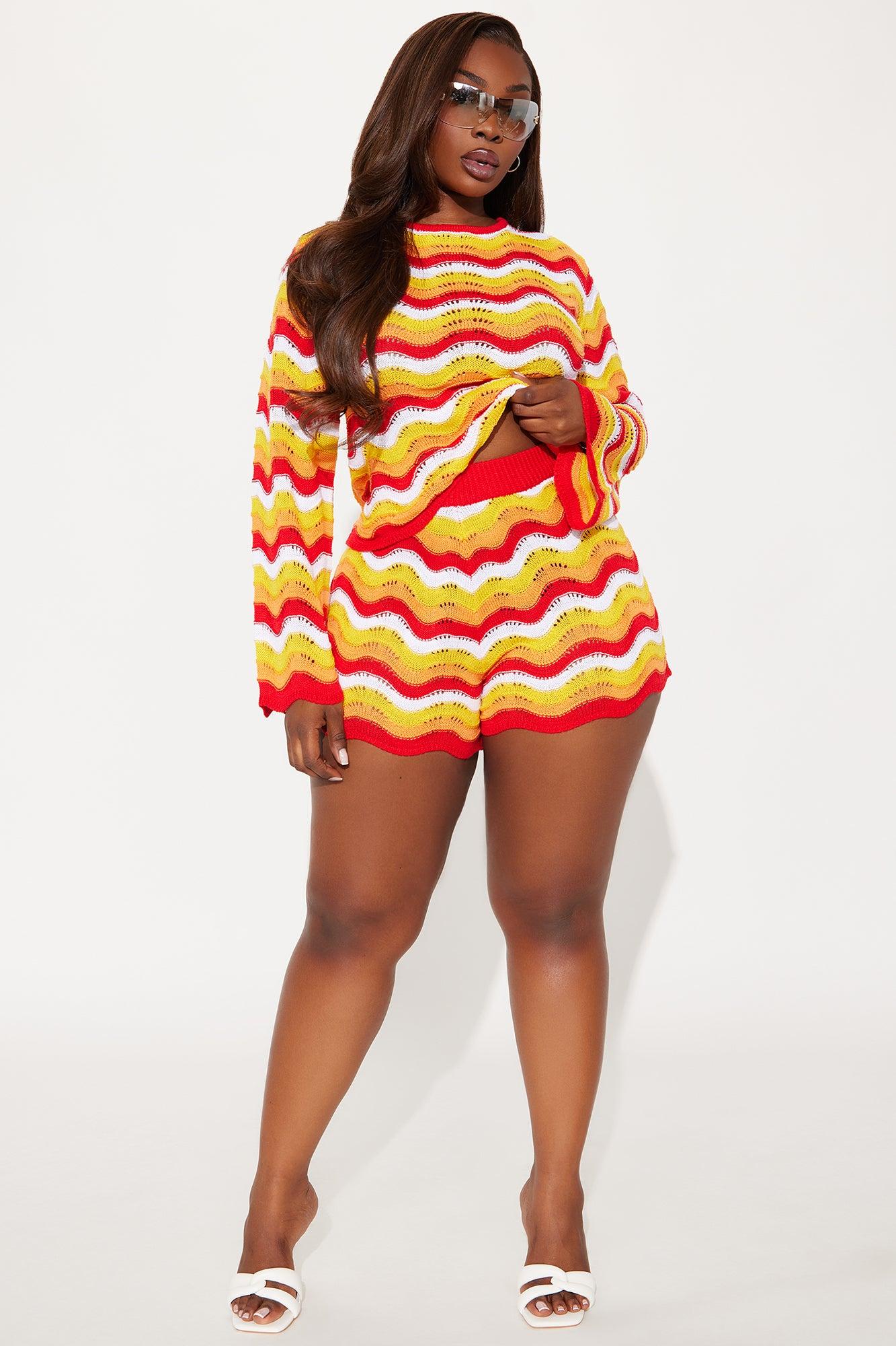 Available In Blue/combo And Orange/combo. Striped Crochet Top And Short Set Stretch Elastic Waistband 100 % Acrylic Imported