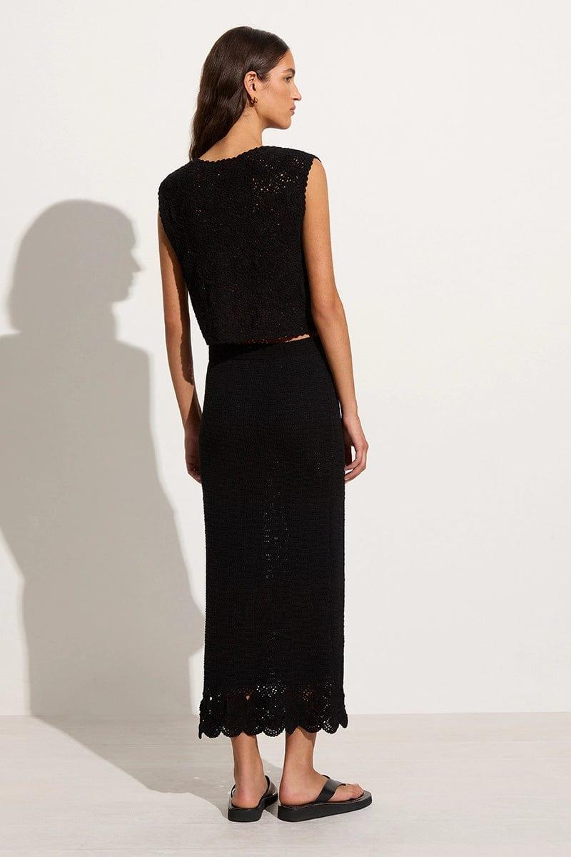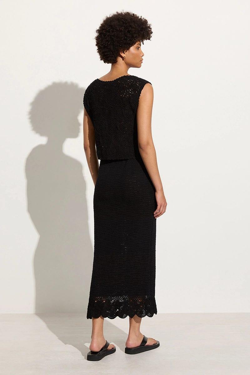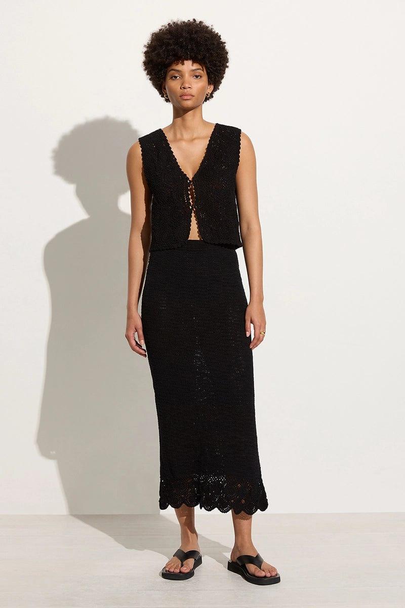 Lovingly hand-crafted using artisanal crochet techniques, the Alejandreas Handmade Crochet Vest in Black features a relaxed sleeveless silhouette, v-neckline and open front design with two hook and eye closures. Patterned with a vintage-inspired circle motif that is delicately woven throughout using 100% cotton crochet. Pair yours with the Lula Handmade Crochet Skirt for a matching set. The Alejandreas was handmade in Bali, taking 3 days to carefully complete each piece.