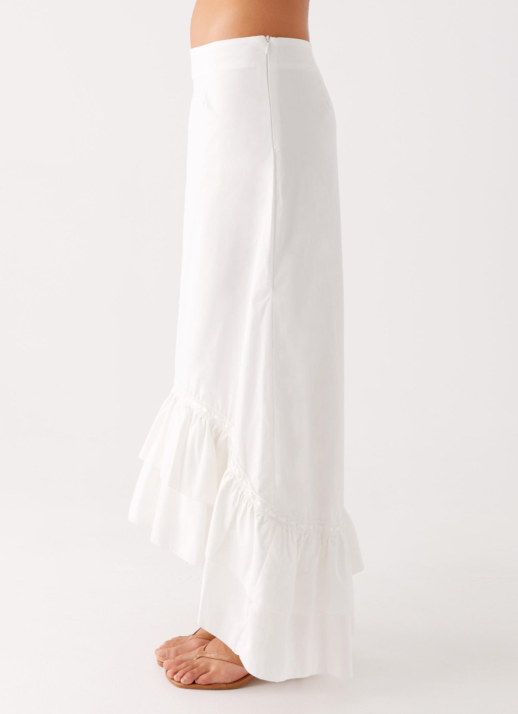 Peppermayo ExclusiveThe Alessandra Maxi Skirt is effortless, sleek, and made for after-dark elegance. Designed with a sultry low-rise fit and fully lined for a smooth, fluid drape, it moves with you from golden hour to the early hours.- Maxi Length - Low Rise - Tiered Ruffled Hemline - Asymmetrical Ribbon Trim Hemline - Fully Lined - Side Hook and Eye, Invisible Zipper - 90% Polyester, 10% SpandexSize AU 8 / US 4 garment measurements:Waist: 78cm/30.7inHem: 131cm/51.6inHip: 96cm/37.8inLength: 101.5cm/39.9inRoberta is 177cm and wearing a size AU 6 / and US 2
