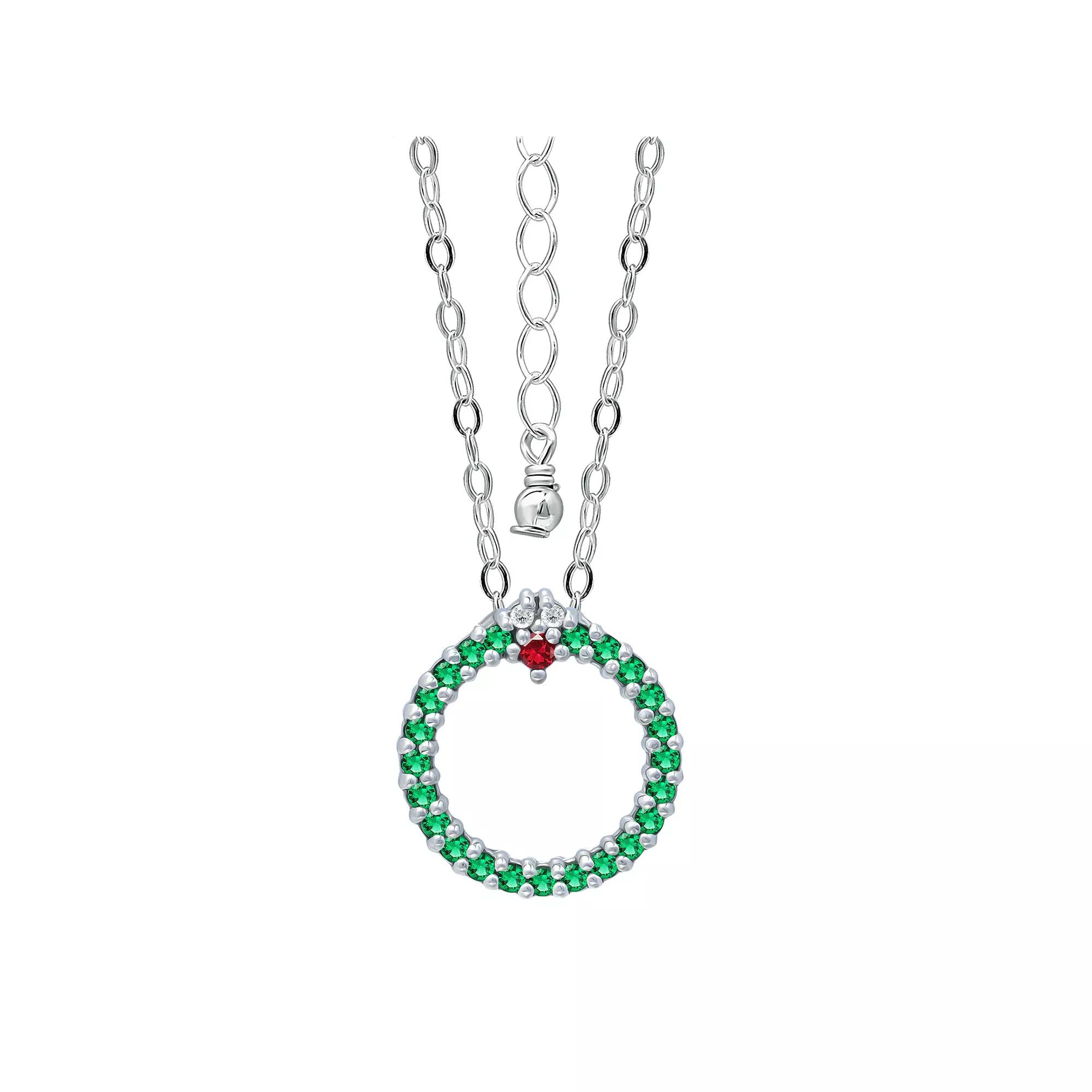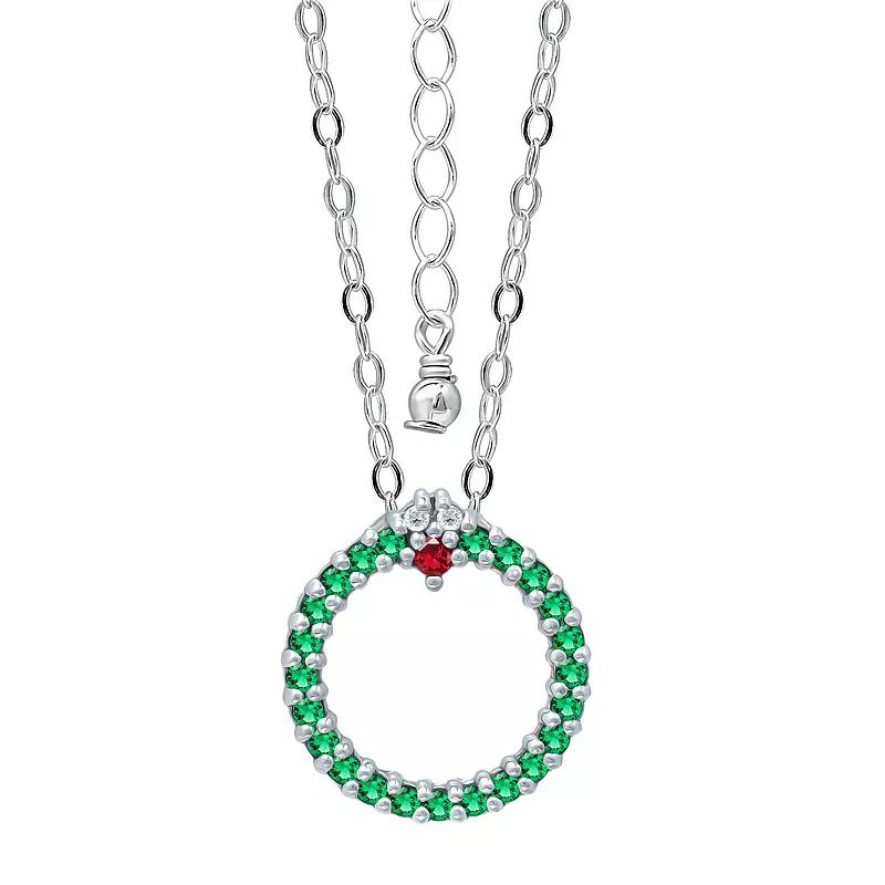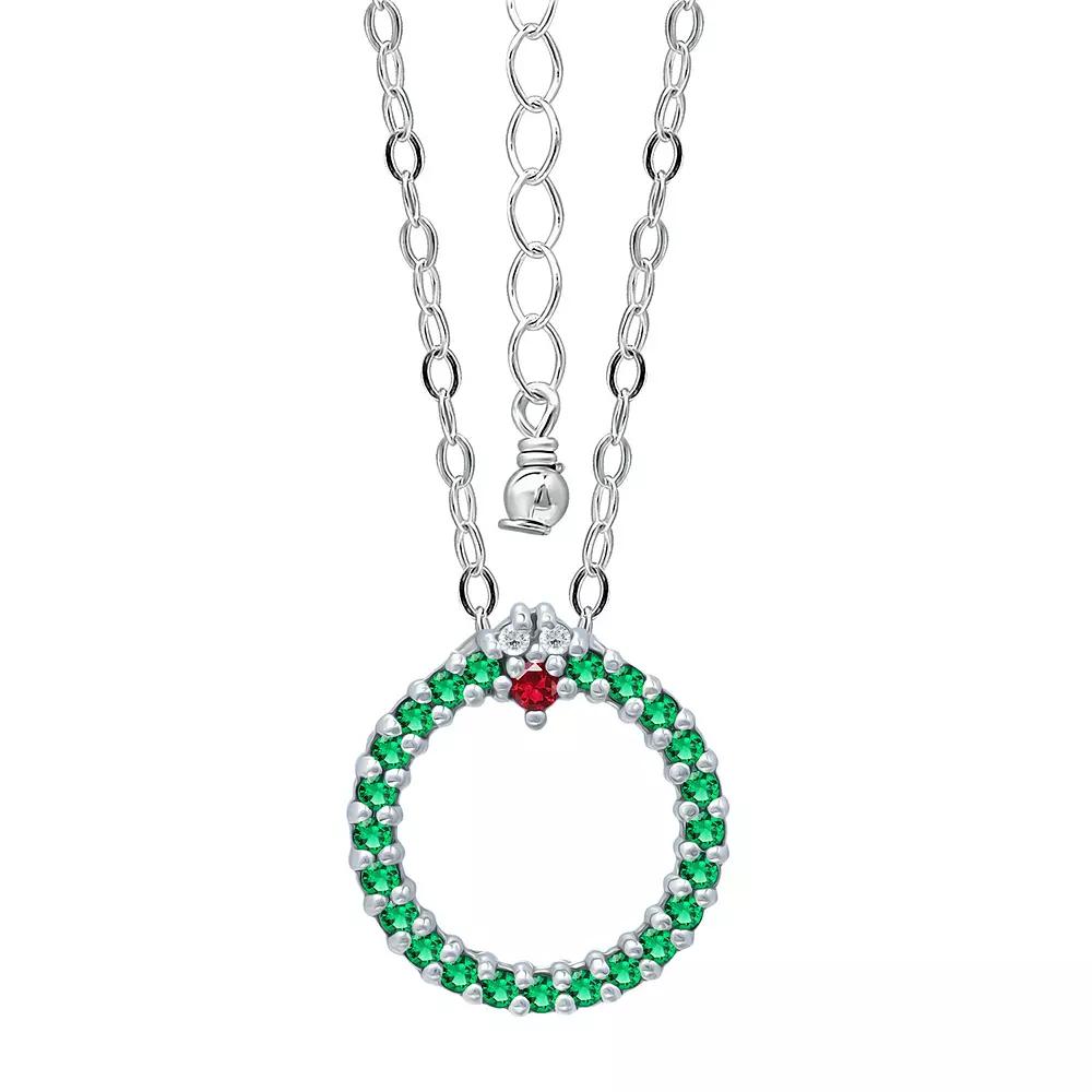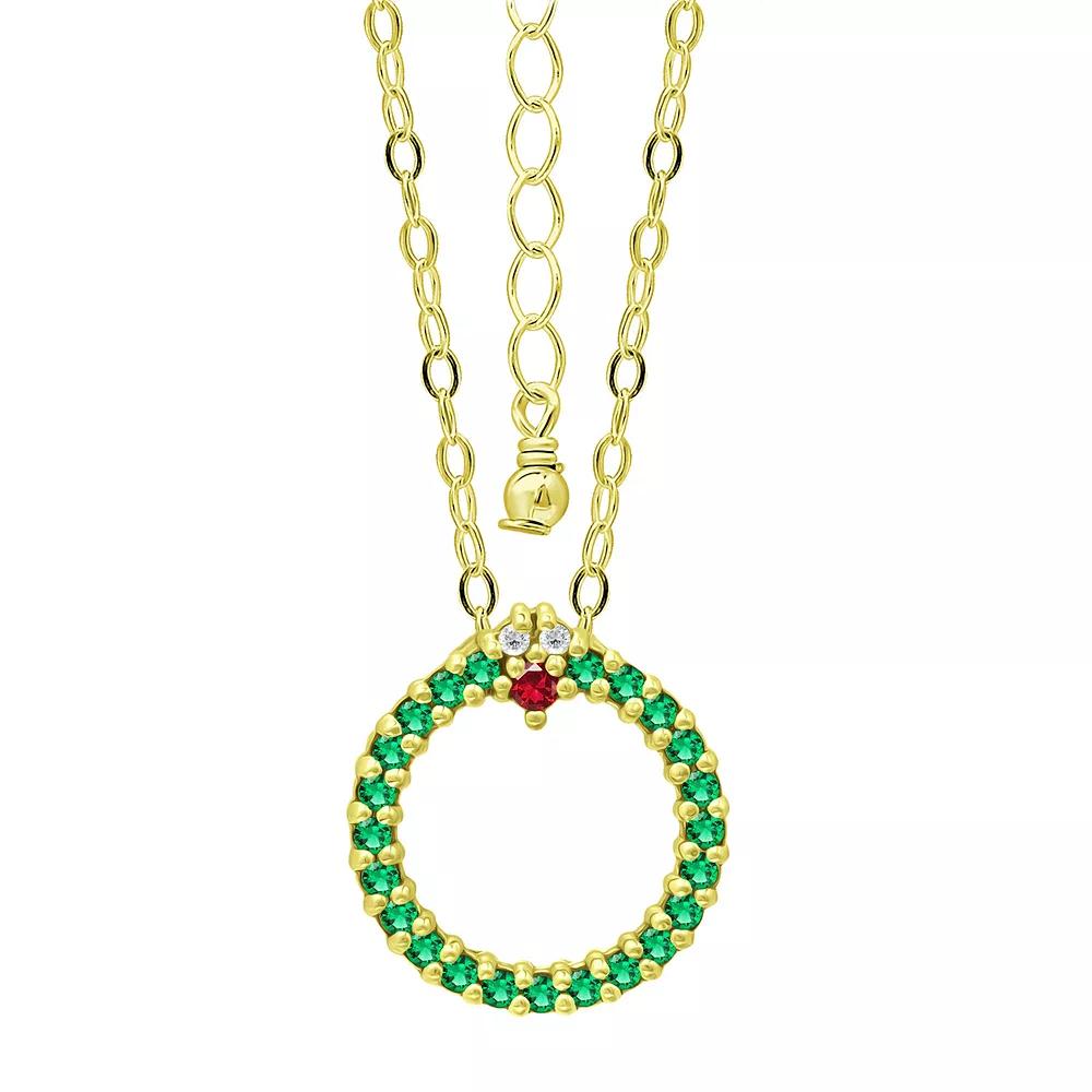Add a festive touch to your holiday wardrobe with this Aleure Precioso cubic zirconia wreath necklace. Add a festive touch to your holiday wardrobe with this Aleure Precioso cubic zirconia wreath necklace. Pendant size: 5/8"L x 5/8"W Chain type: cable Chain length: 18 in.+ 2-in. extender Nickel free Metal: sterling silver Plating: 18k gold flash plated Finish: polished Packaging: pouchSTONE DETAILS Stone type: cubic zirconia Shape: round Setting: prong Gemstones may have been treated to enhance their appearance. Special care may be required. Please visit our Gemstone Treatment & Special Care Guide for more information. Size: 16". Color: Green. Gender: female. Age Group: adult.