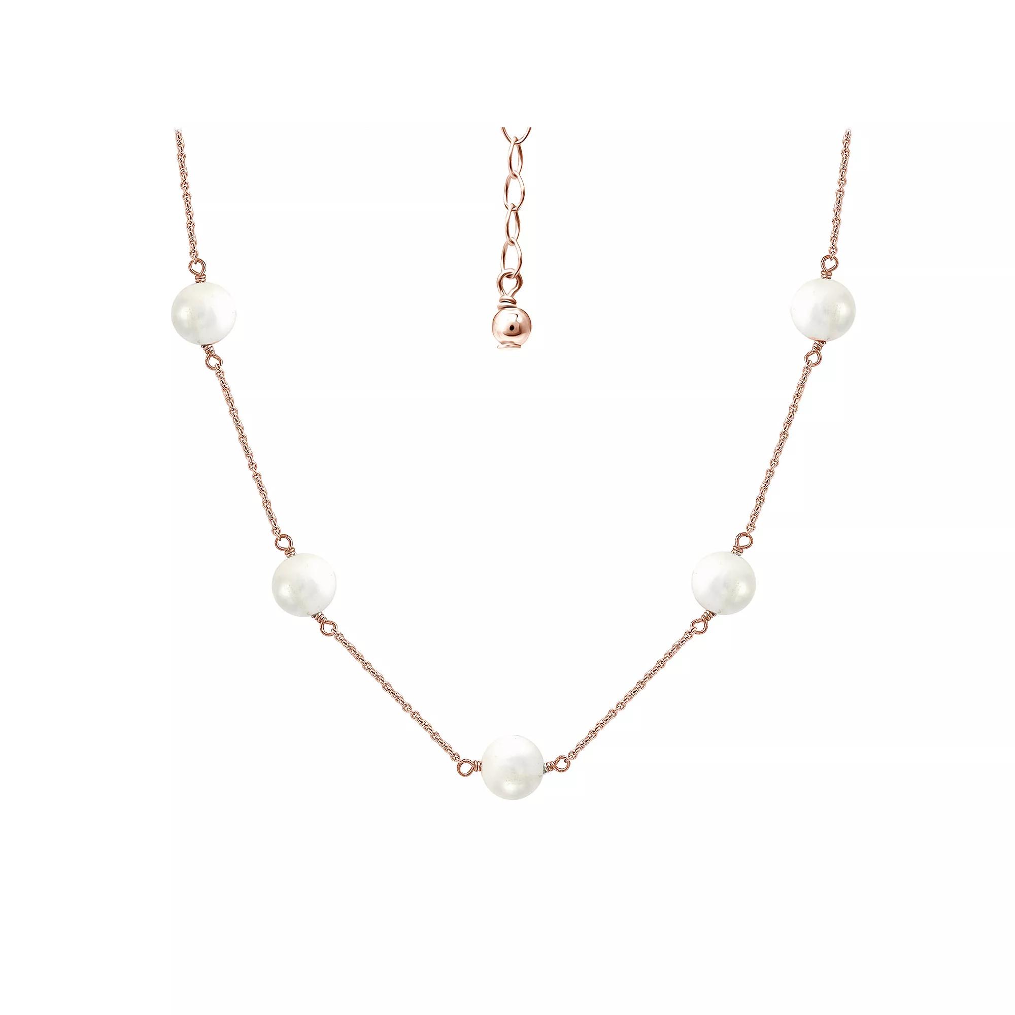 Stay stylish with this Aleure Precioso Rose Gold Over Sterling Silver Cultured Pearl Station Necklace. Stay stylish with this Aleure Precioso Rose Gold Over Sterling Silver Cultured Pearl Station Necklace. Metal: sterling silver Necklace length: 18 in. with 2 in. extender Drop length: .25 in. Packaging: pouch Plating: 18k rose gold flash plated Finish: polished Chain type: cableCULTURED PEARL DETAILS Type: freshwater Shape: near round Color: white Pearl size: 8 mm Creation: cultured Gemstones may have been treated to enhance their appearance. Special care may be required. Please visit our Gemstone Treatment & Special Care Guide for more information. Size: 16". Gender: female. Age Group: adult.
