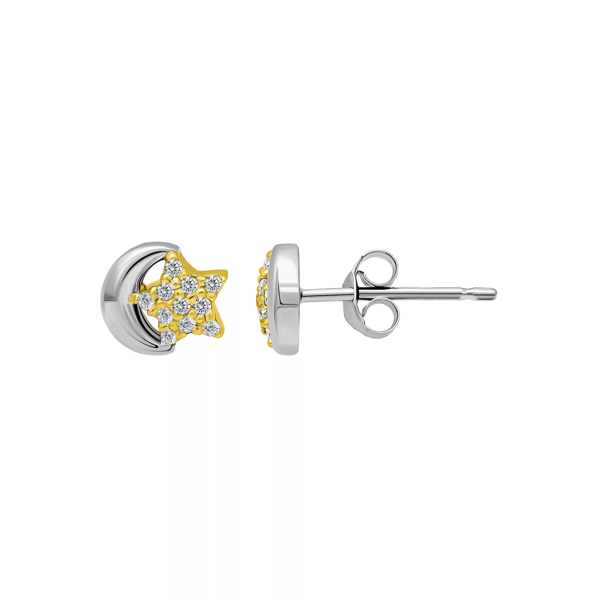 Accent your look with these sparking Aleure Precioso Sterling Silver Cubic Zirconia Star & Cresent Moon Stud Earrings. Click on this JEWELRY & WATCHES GUIDE to learn about fit, styles, materials and more! Accent your look with these sparking Aleure Precioso Sterling Silver Cubic Zirconia Star & Cresent Moon Stud Earrings. Click on this JEWELRY & WATCHES GUIDE to learn about fit, styles, materials and more! FEATURES Dimensions: 6 mm x 7 mm Backings: post Metal: sterling silver Plating: sterling silver, 18k gold flash plated Finish: polished Packaging: pouch Nickel free ImportedSTONE DETAILS Stone type: cubic zirconia Shape: round Setting: pave Gemstones may have been treated to enhance their appearance. Special care may be required. Please visit our Gemstone Treatment & Special Care Guide for more information. Size: One Size. Color: Two Tone. Gender: female. Age Group: adult. Material: Gold Plate.