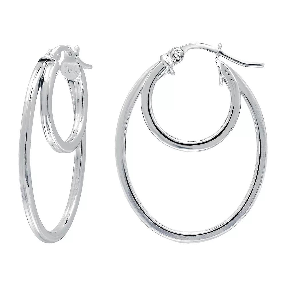 Dress up your looks with these Aleure Precioso double oval hoop earrings. Dress up your looks with these Aleure Precioso double oval hoop earrings. Diameter: 25 mm Backings: click-it Metal: sterling silver Plating: 18k gold flash plated, sterling silver Finish: polished Packaging: pouch Nickel free Size: One Size. Gender: female. Age Group: adult.