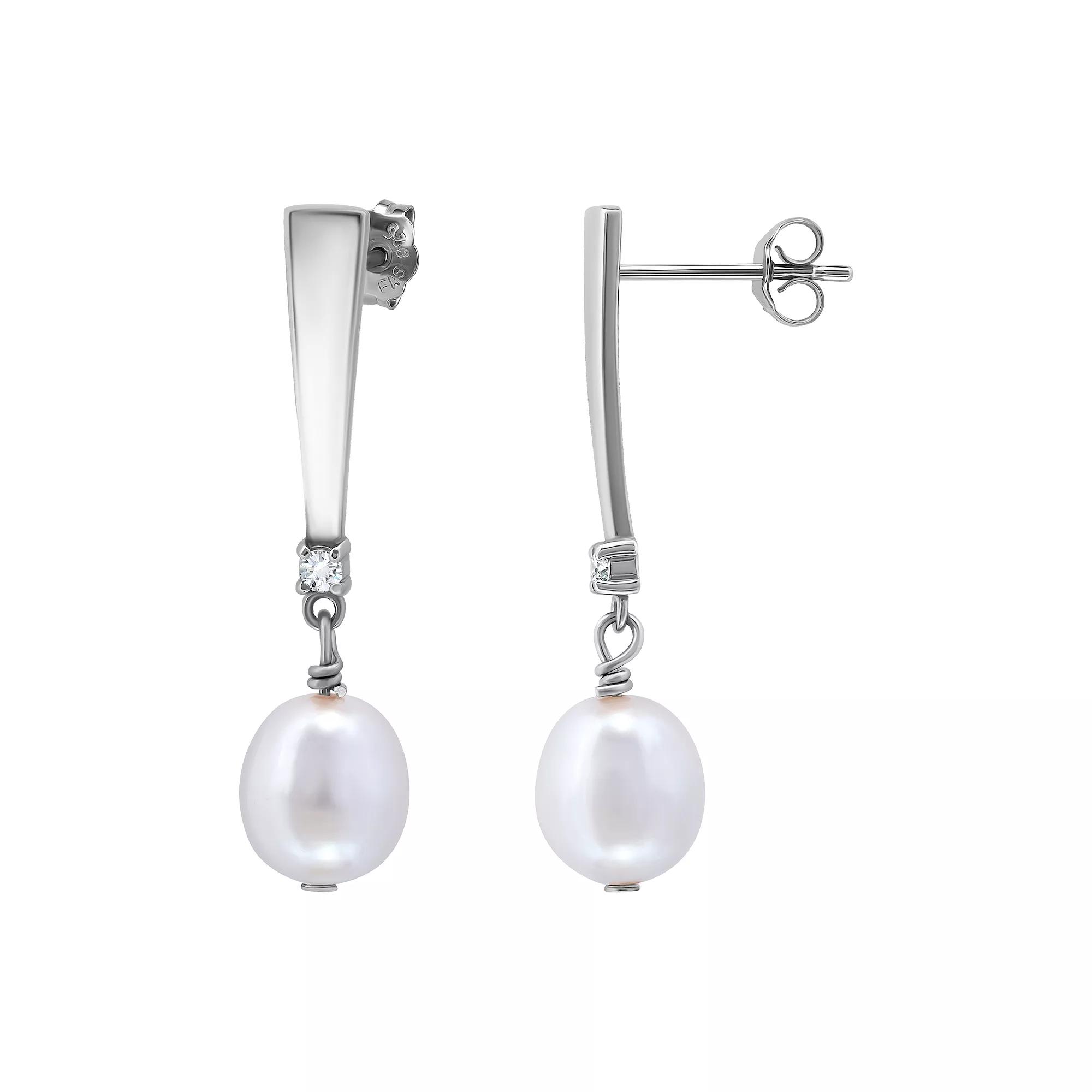 Aleure Precioso Sterling Silver Freshwater Cultured Pearl & Cubic Zirconia Linear Drop Earrings, Women's, Silver Tone
