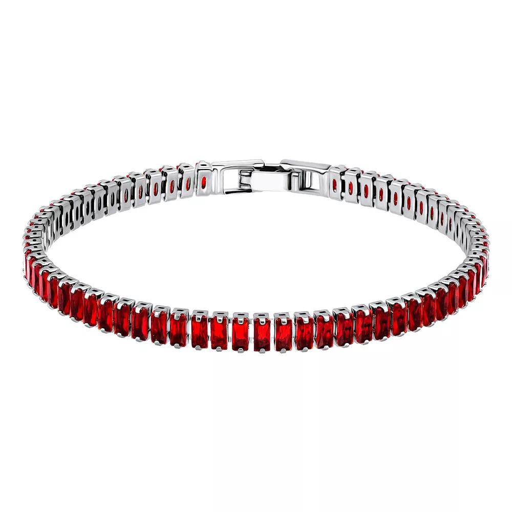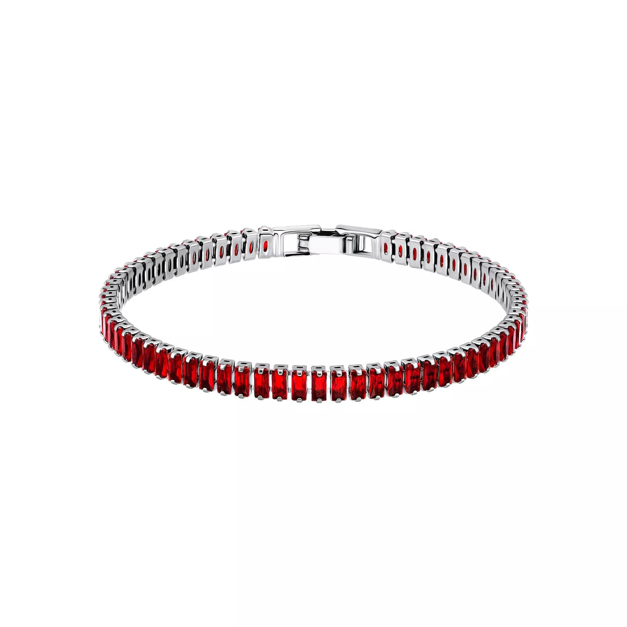 Add a pop of color to your wardrobe with this sterling silver plated Aleure Precioso crystal tennis bracelet. Add a pop of color to your wardrobe with this sterling silver plated Aleure Precioso crystal tennis bracelet. Length: 7.25 in. Nickel free Metal: brass Plating: sterling silver Finish: polished Packaging: pouch Crystal accents Size: 7.25". Color: Red. Gender: female. Age Group: adult. Material: Silver Plate Brass.