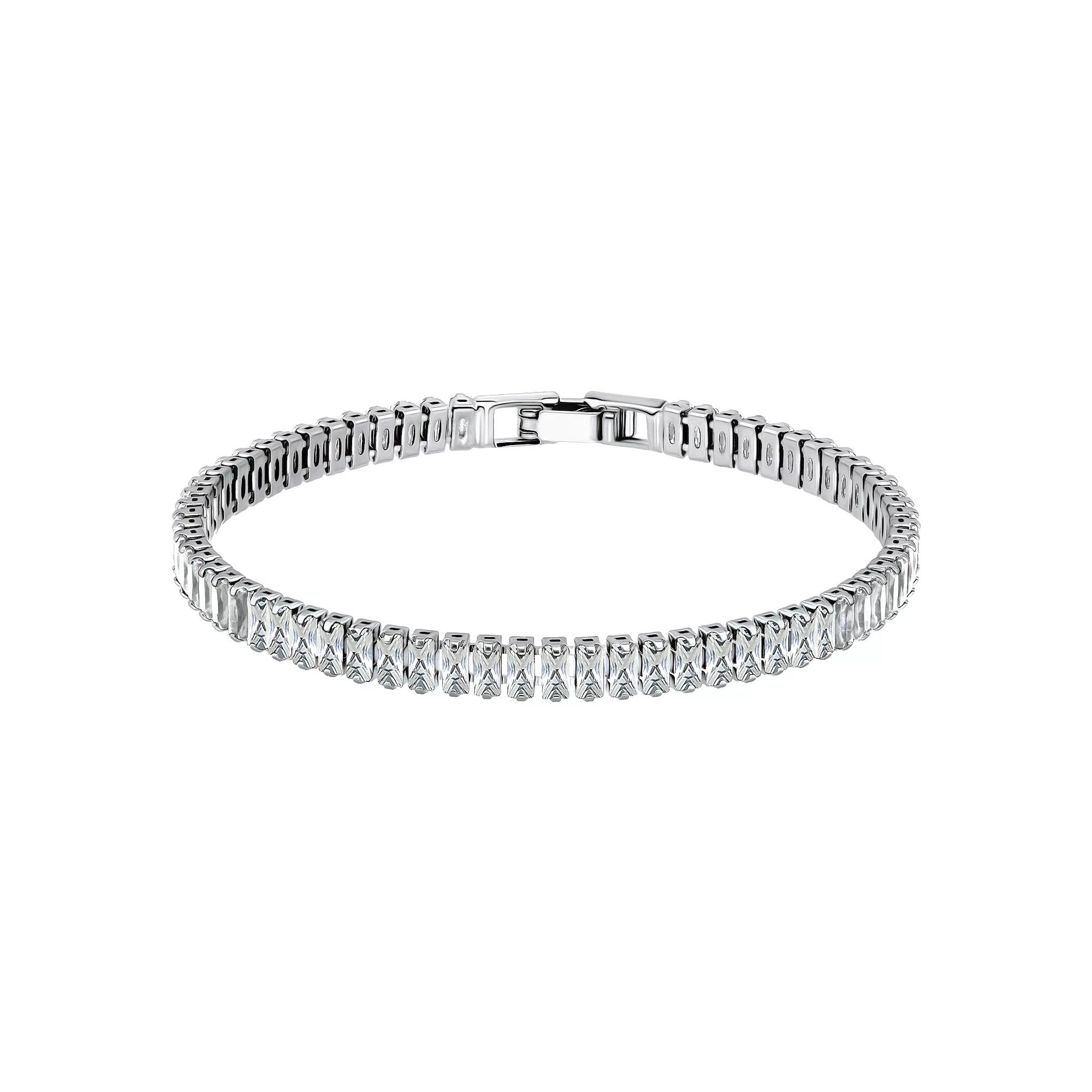 Add an elegant touch of sparkle to your wardrobe with this fine silver plated Aleure Precioso cubic zirconia tennis bracelet. Add an elegant touch of sparkle to your wardrobe with this fine silver plated Aleure Precioso cubic zirconia tennis bracelet. Length: 7.25 in. Nickel free Metal: brass Plating: sterling silver Finish: polished Packaging: pouchSTONE DETAILS Stone type: cubic zirconia Total weight: 17 ct. Shape: baguette cut Setting: prong Gemstones may have been treated to enhance their appearance. Special care may be required. Please visit our Gemstone Treatment & Special Care Guide for more information. Size: 7.25". Gender: female. Age Group: adult. Material: Silver Plate Brass.