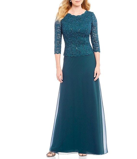From Alex Evenings, this gown features: Crew neckline 3/4 sleeves sequined lace bodice chiffon skirt back zipper closure nylon/polyester/spandex hand wash Imported.