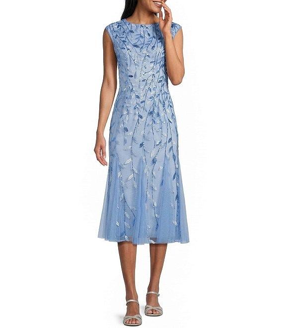 Alex Evenings Boat Neck Cap Sleeve Sequin Midi Dress
