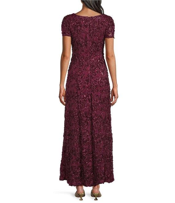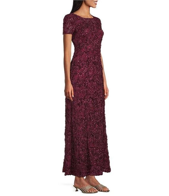 Alex Evenings Lace Boat Neck Short Sleeve Soutache A-Line Gown