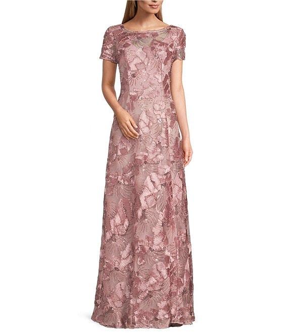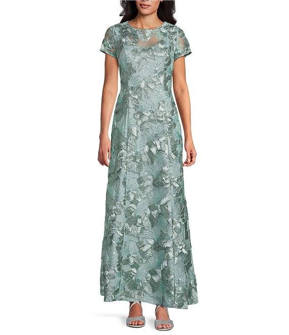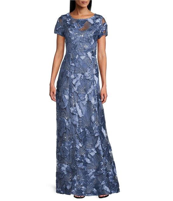 Alex Evenings Lace Scoop Neck Short Sleeve A-Line Gown