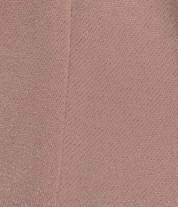 From Alex Evenings, this gown features; Metallic knit fabrication A-line gown silhouette Boat neckline Short embellished flutter sleeves Ruched waist detailing Front slit Center back zipper closure Approx. 51" length Nylon/polyester/spandex Hand wash Imported.