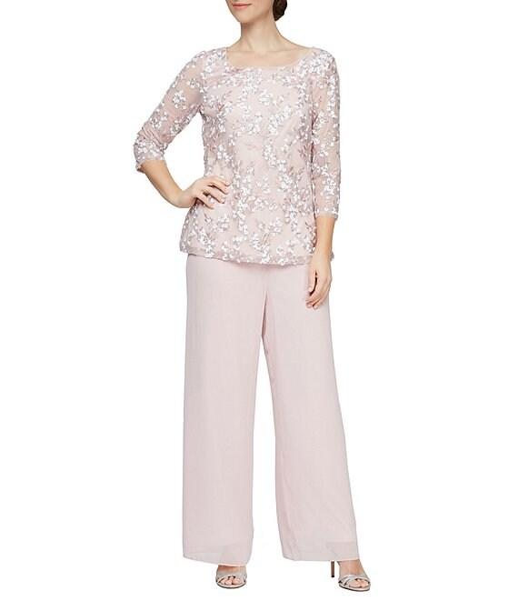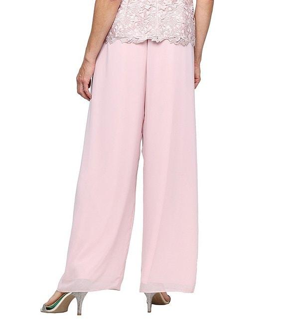 Alex Evenings Petite Size Wide Leg Elastic Waist Chiffon Pull-On Pants