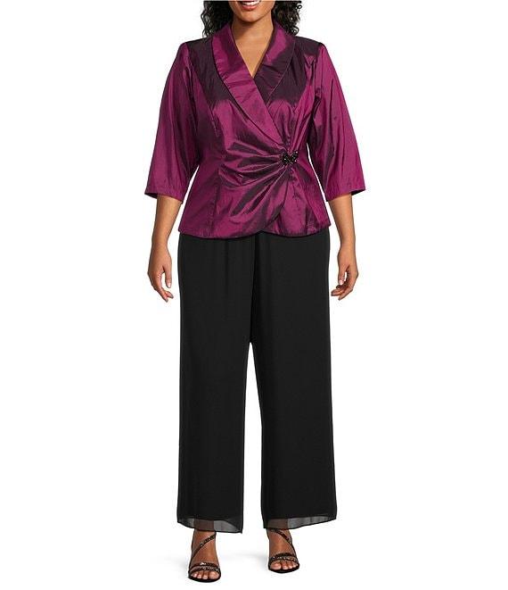 Alex Evenings Plus Size 3/4 Sleeve Collared V-Neck Taffeta Blouse