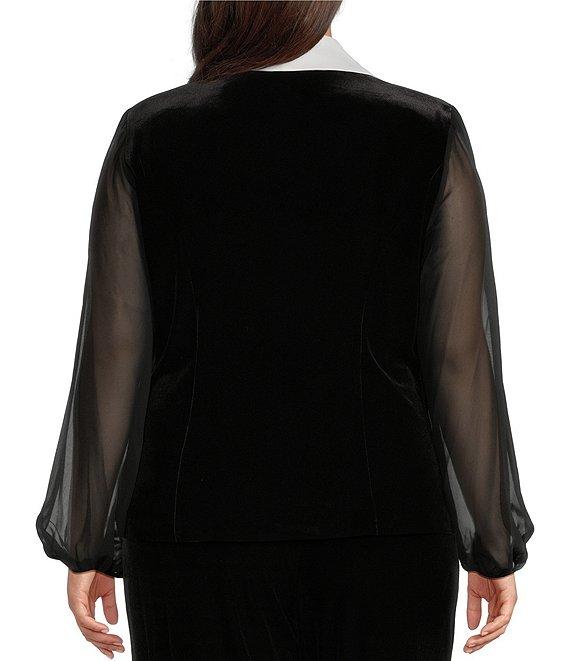 Alex Evenings Plus Size Long Sleeve Collared Side Button Velvet Blouse