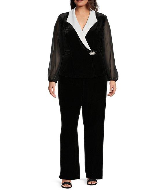 From Alex Evenings Plus, this blouse features: Stretch velvet fabrication Collared neckline Bubble long sleeves Lined Side button closure Approx. 25" in length Polyester/spandex Hand wash Imported.