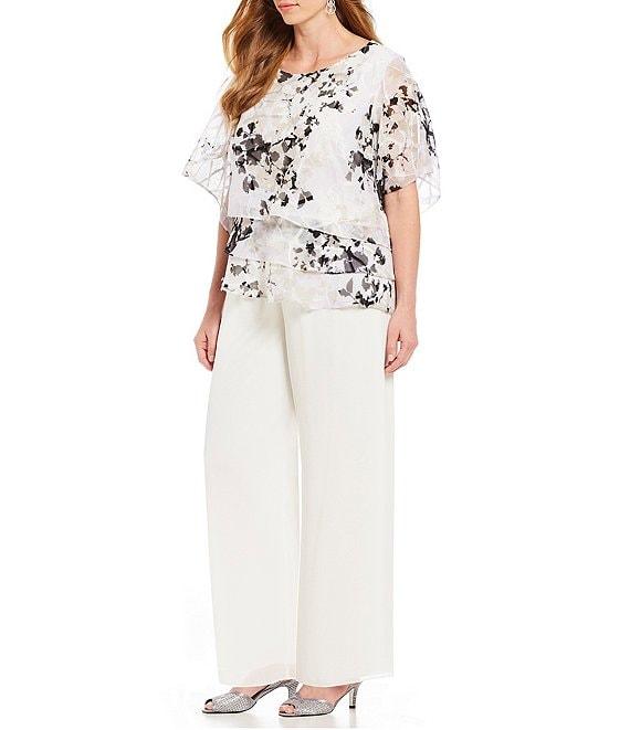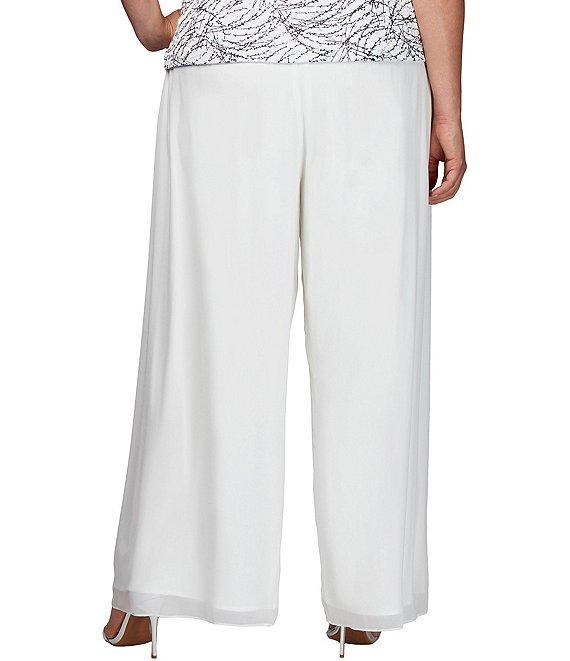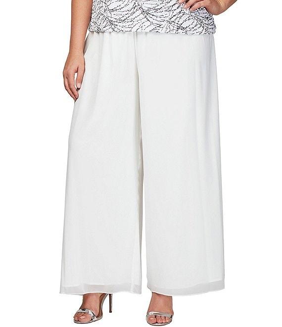 Alex Evenings Plus Size Silky Chiffon Wide Leg Elastic Waist Pants