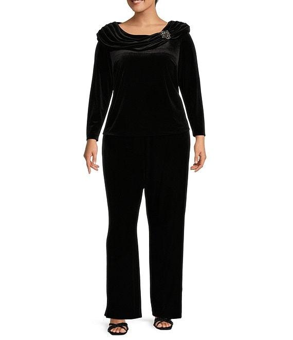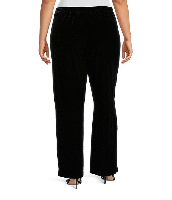Alex Evenings Plus Size Stretch Velvet Flat Front Straight Leg Pull-On Pants