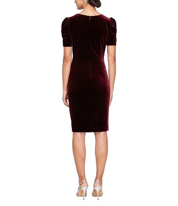 Alex Evenings Square Neck Short Puff Sleeve Embellished Waist Sheath Dress