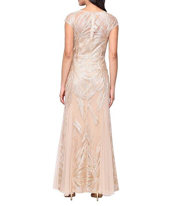 Alex Evenings Stretch Tulle V-Neck Cap Sleeve Embroidered Sheath Gown