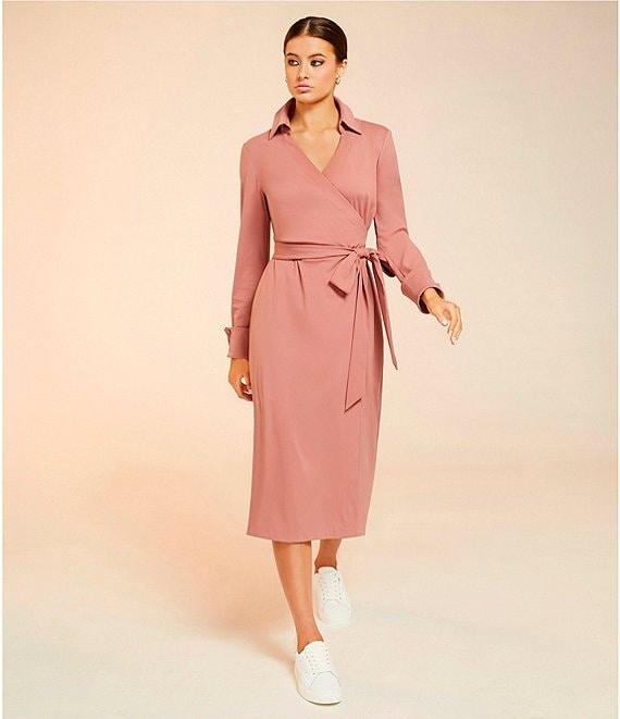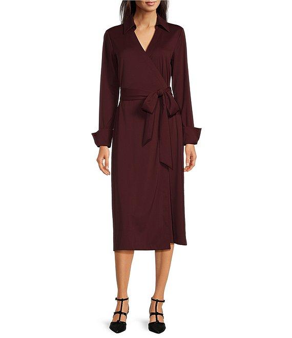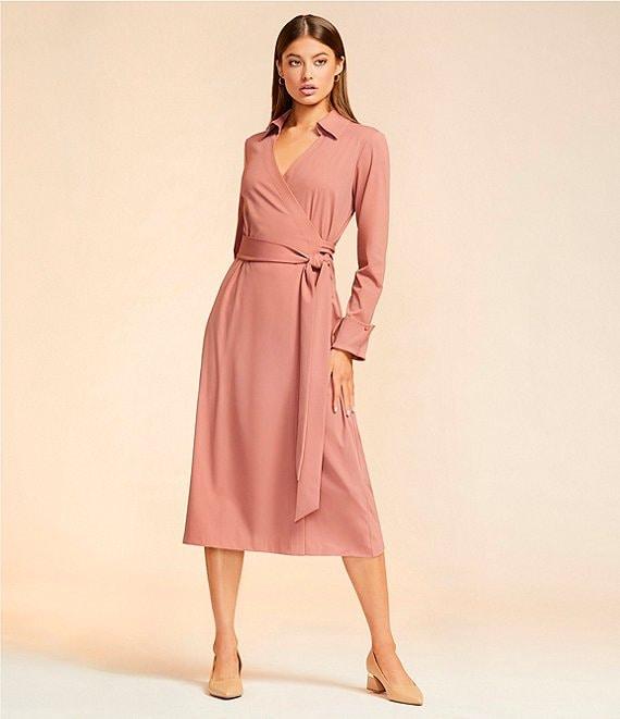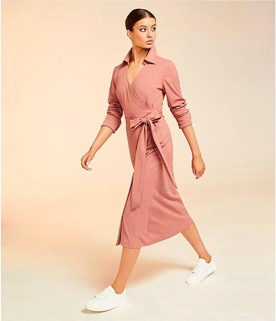 From Alex Marie, this dress features: Super stretch fabrication Moisture wicking Wrap silhouette Hidden inside button closure / side wrap Notch collar V-neckline Long cuffed sleeves approx. 46.5" length Nylon/elastane Machine wash/line dry Imported. Introducing Alex Marie's new JETSET-TECH collection. Using a 360 stretch fabrication with technical components such as moisture wicking and machine washability - this collection is the perfect combination of polished meets performance to keep her feeling comfortable wherever the day may take her.