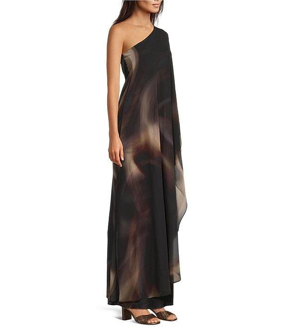 From Alex Marie, this gown features: Satin and chiffon overlay fabrication Asymmetrical one shoulder neckline Long sleeve on one side Side seam hook & eye with invisible zipper closure Fully lined Maxi length Approx. 59" HPS in length Polyester, elastane Dry clean only Imported.