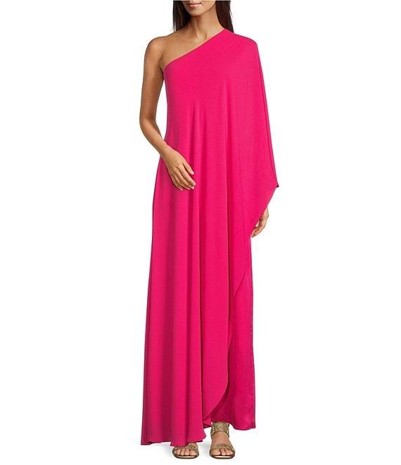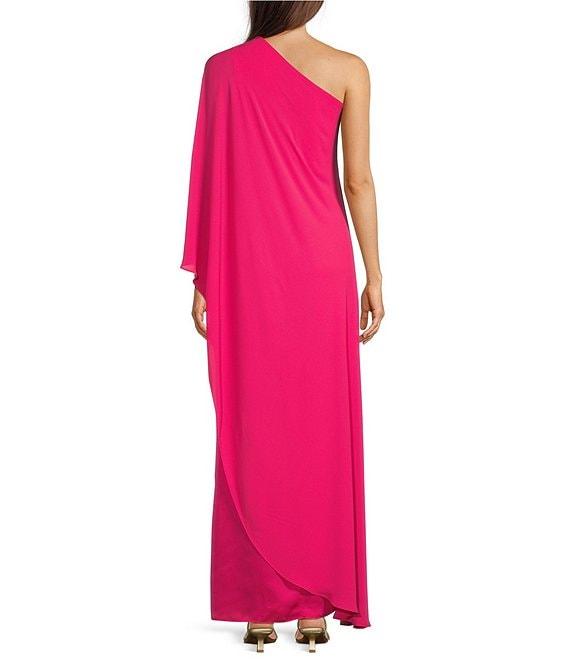 From Alex Marie, this gown features: Satin fabrication Shift silhouette One shoulder neckline One sleeve Lined Zip back - partial Approx. 59" length Polyester Dry clean Imported.