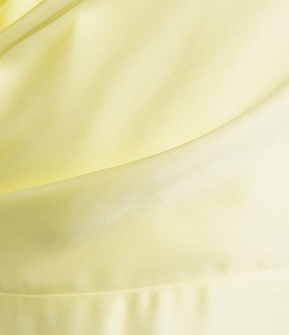 From Alex Marie, this dress features: Stretch satin fabrication Asymmetrical neckline Sleeveless Invisible zip hook and eye side closure Approx. 58.5" length Polyester/elastane fiber content Polyester/elastane lining Dry clean Imported. Dillard's Exclusive.