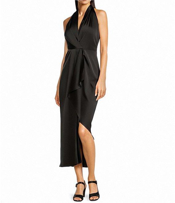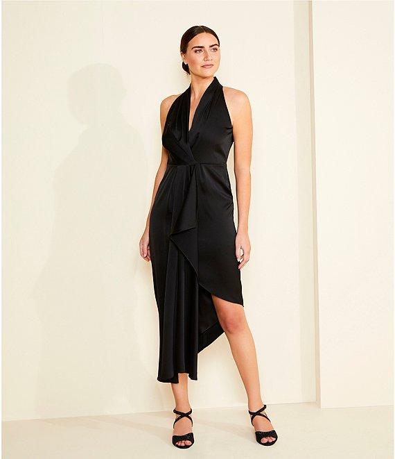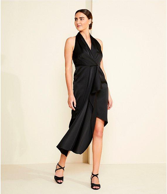 Alex Marie Hazel Surplice V-Neck Sleeveless Satin Asymmetrical Hem Midi Dress