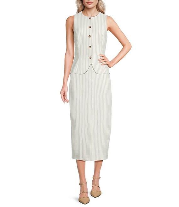Alex Marie Jackie Coordinating Pinstripe Novelty Suiting Midi Skirt