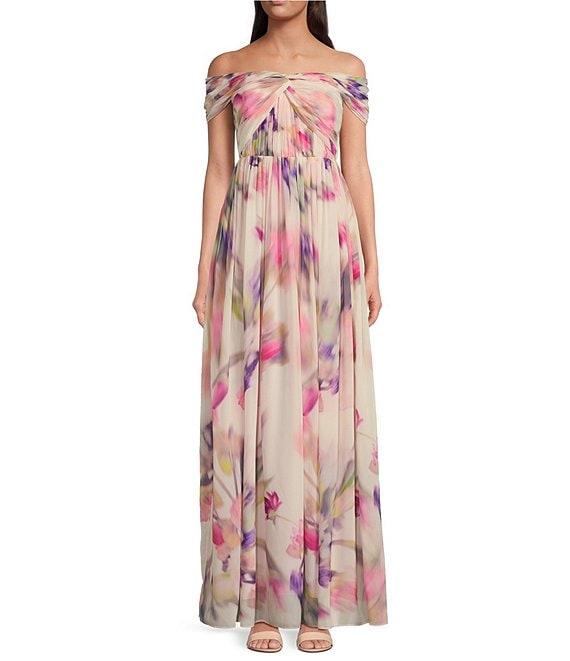 Alex Marie Janet Chiffon Off-The-Shoulder Gown