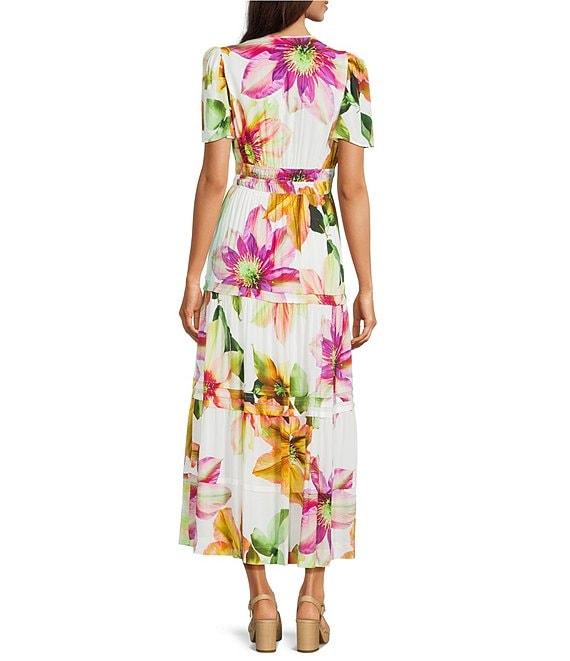 Alex Marie Maura Floral Short Sleeve A Line Notch Collar Maxi Dress