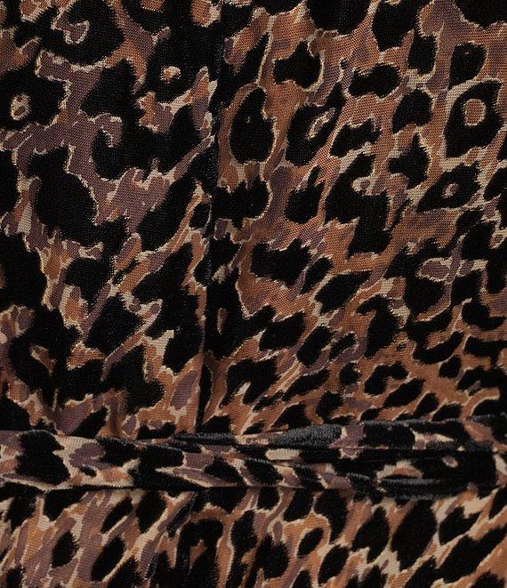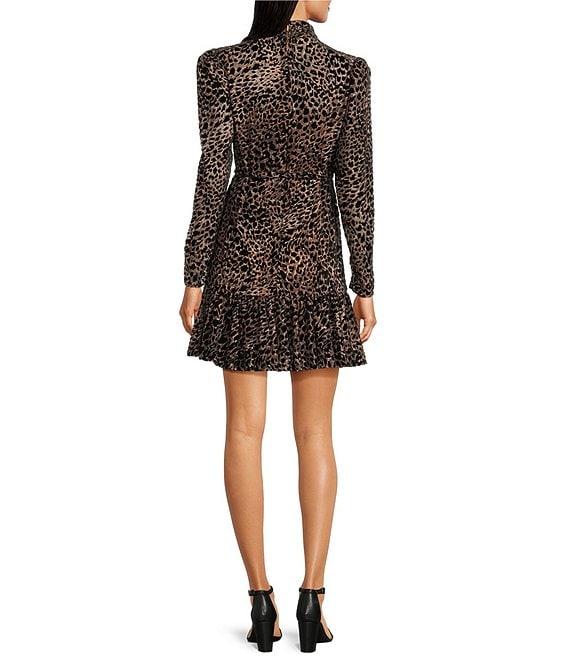 Alex Marie Petite Size Carley Leopard Velvet Burnout Long Sleeve Mini Dress