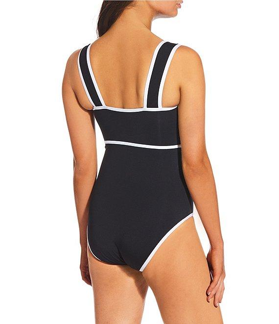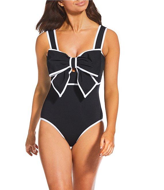 From Alex Marie, this one piece swimsuit features: Fabric smooths, sculpts, and supports 4-way stretch UPF protection Bandeau neckline Over-the-shoulder straps Bow detail Full coverage Lined Pull-on construction Nylon/elastane Hand wash Imported.