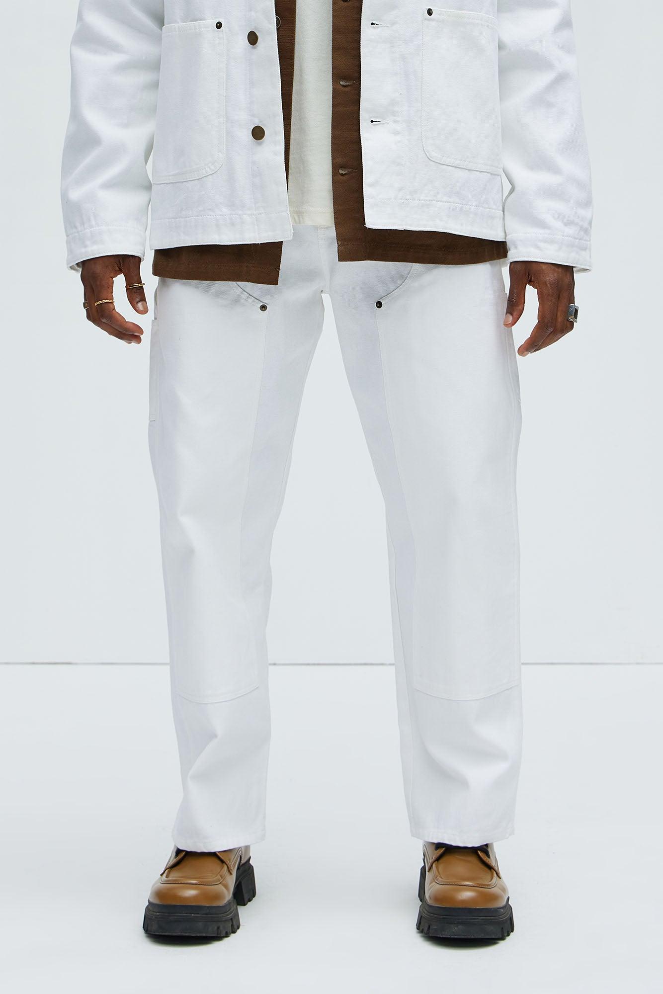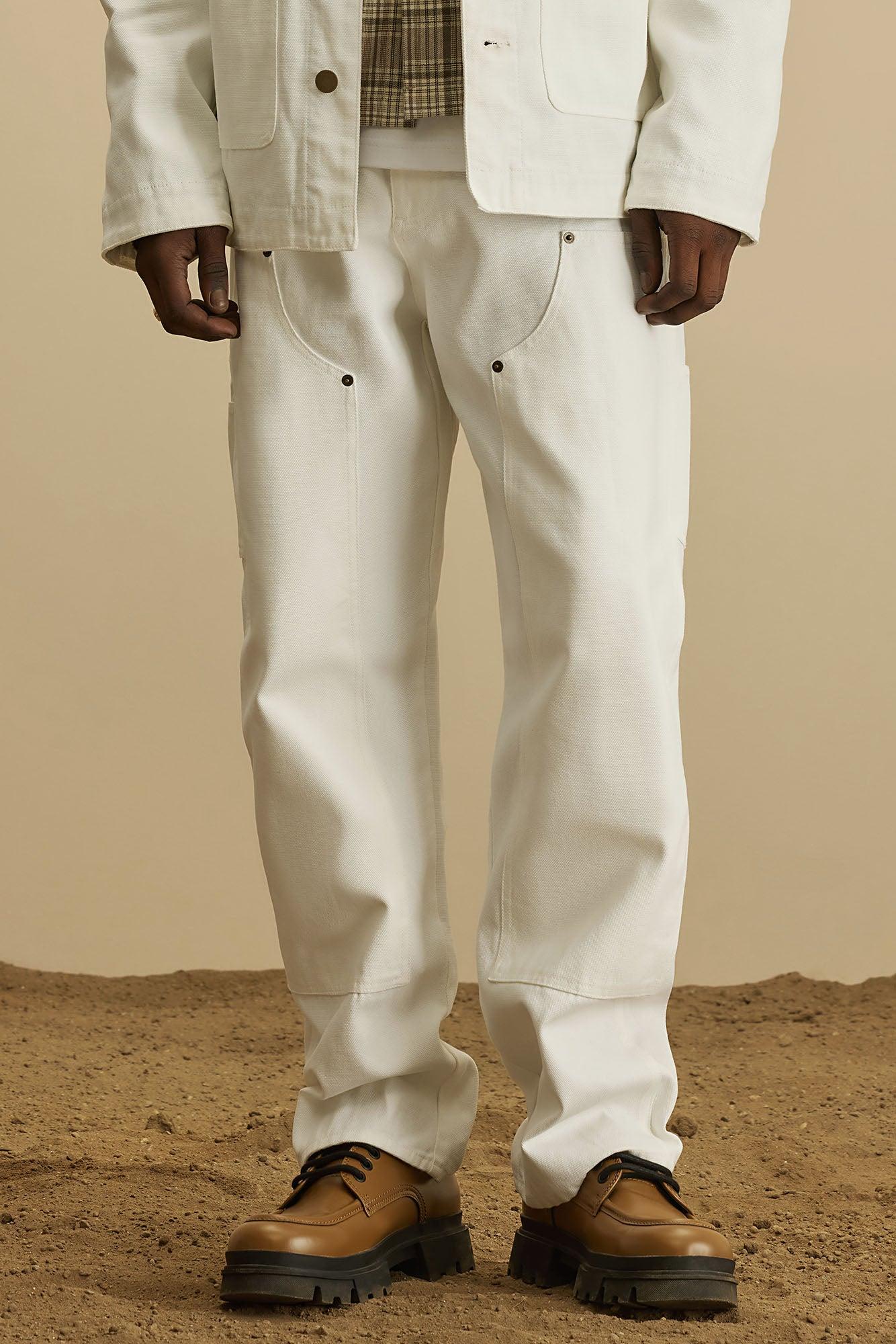 Alexander Double Knee Straight Utility Canvas Pants - White
