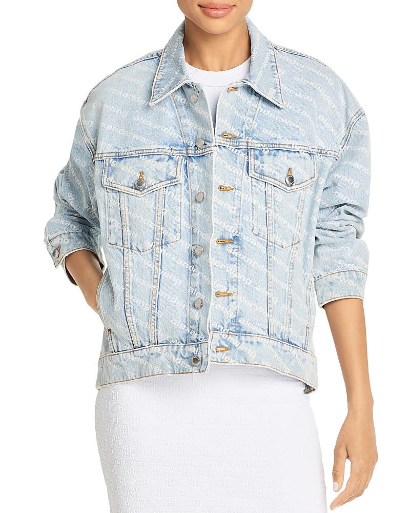 Alexander Wang Falling Back Jacket in Pebble Bleach - Denim-Light. Size XS (also in XXS). 100% cotton. Made in China. Machine wash. Front button closure. Breast slip pocket with button closure. Side slant. Alexander Wang logo motif throughout. Back logo patch. DENR-WO37. 4DC2202756. Renowned for his perpetually evolving recontextualization of the urban uniform, designer Alexander Wang launched Denim x Alexander Wang in 2015. The brand utilizes cutting-edge techniques and hand-finished methods combined with unique wash and dry processes to achieve a special, yet clean and functional new take on denim. Crafted with all the nuances desired by vintage denim enthusiasts and Wang himself, each pair of denim possesses that innate signature Alexander Wang model-off-duty slouch.