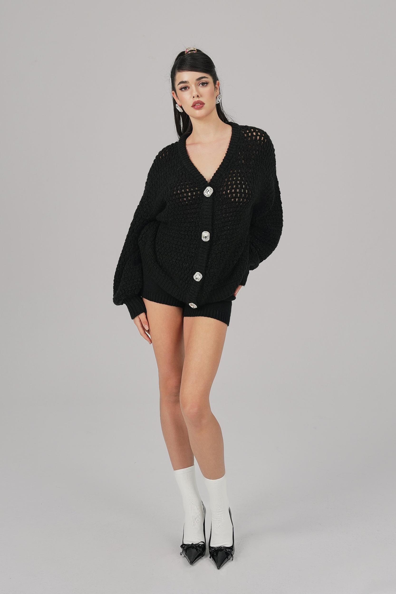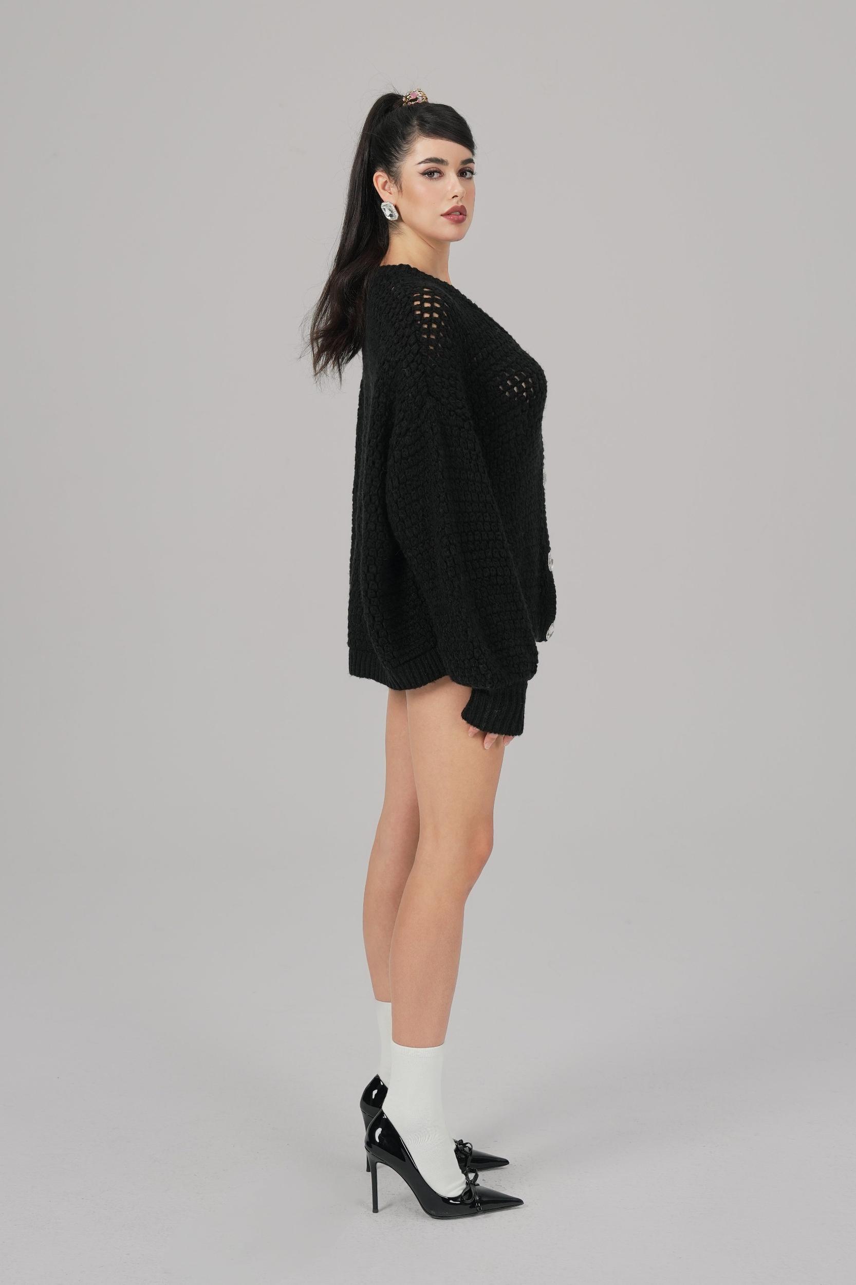 The Alexis Scarf Set combines cozy warmth with timeless elegance, crafted from a blend of 4.5-count Icelandic yarn and mohair for a soft, lightweight, and warm feel. Featuring a loose, wide-fit diamond-button cardigan and a matching scarf, this set brings effortless sophistication to your winter wardrobe. Features: Material: Blended 4.5-count Icelandic yarn and mohair for softness, warmth, and durability. Cardigan Design: Loose, wide fit with a hollow-knit texture for a light, layered look that flatters all body types. Placket Details: Double-layer pit strip finish with sparkling square diamond buttons for a refined touch. Cuffs & Hem: Structured design for a balanced, three-dimensional silhouette. Matching Scarf: Crafted with the same yarn and hollow-knit texture, completing the elegant, coordinated look. Colors: Available in black for classic charm, white for softness, and pink for a sweet, romantic vibe. Styling: Perfect for showcasing warmth and elegance in the chilly winter months.