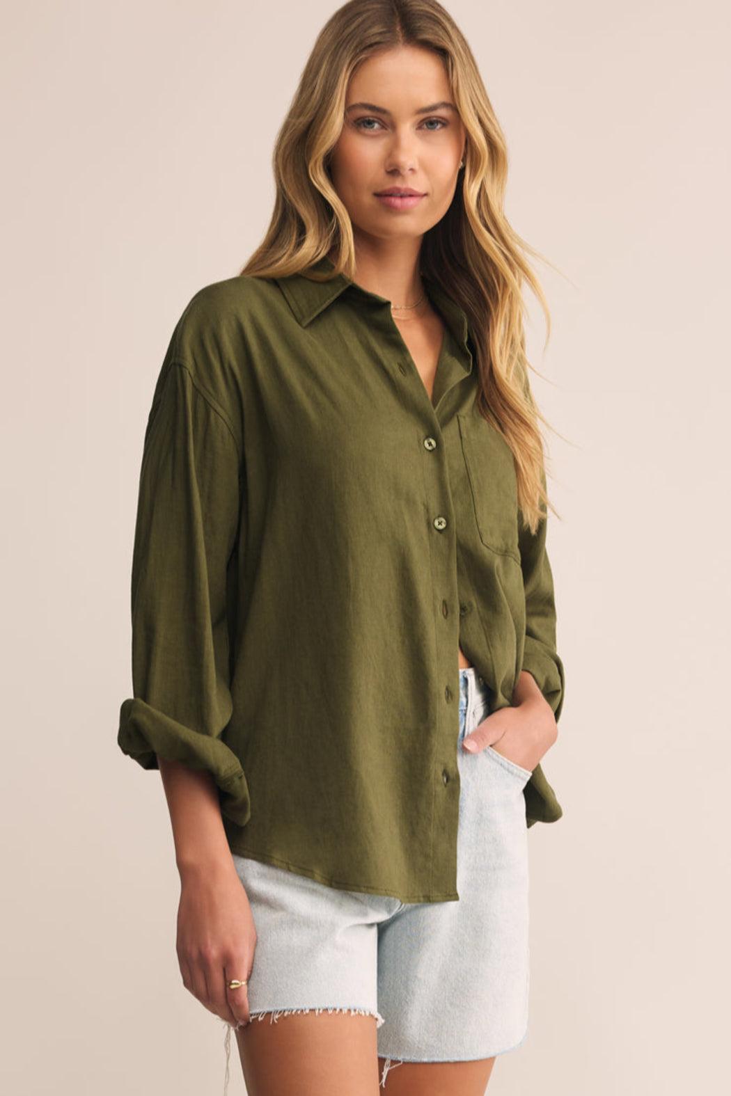 Collared long sleeve button front midweight shirt Can be used as a lightweight jacket or shirt