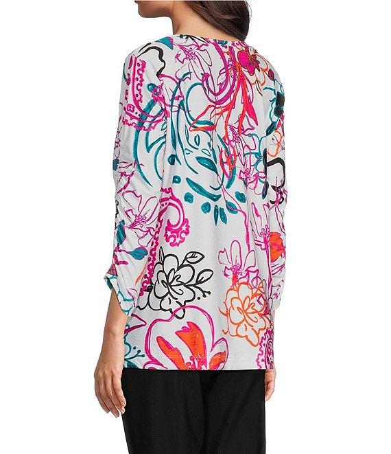 Ali Miles Abstract Floral V-Neck 3/4 Cinch Sleeve Tunic