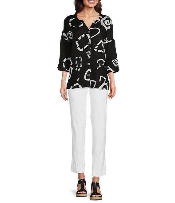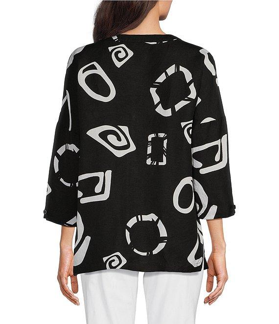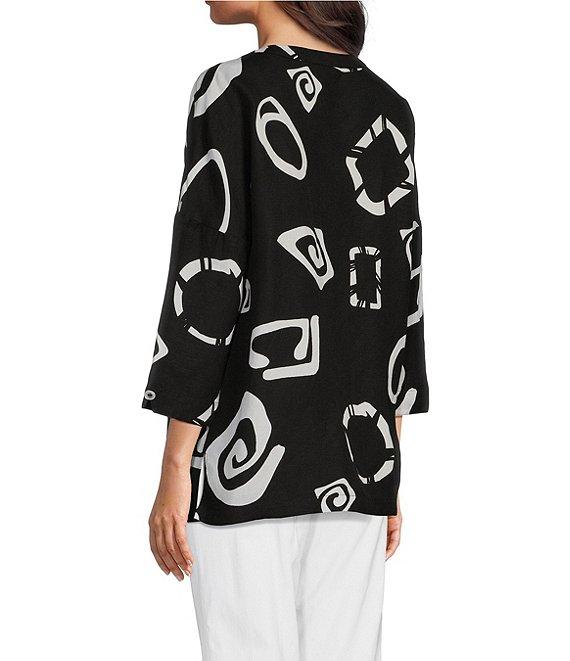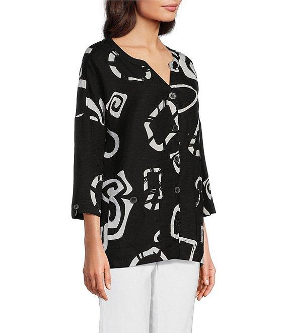 Ali Miles Abstract Print Y-Collar 3/4 Sleeve Button Front Tunic