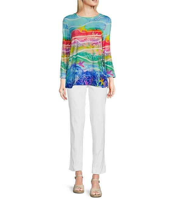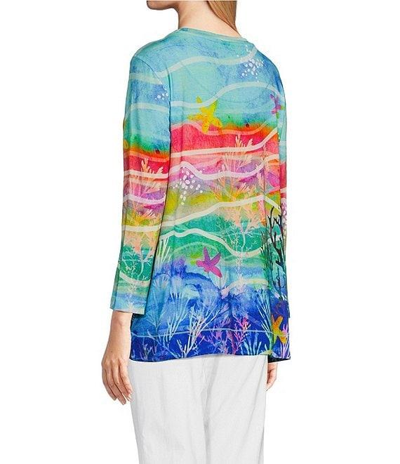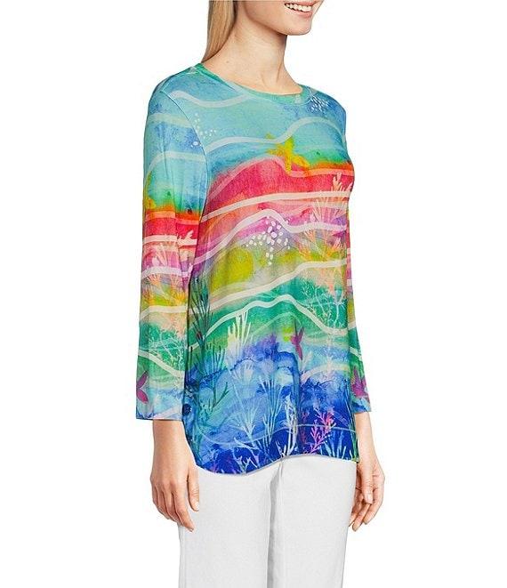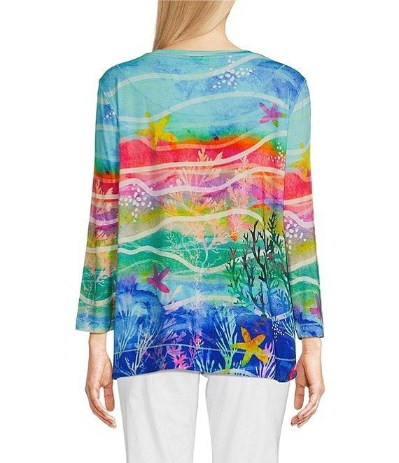 Ali Miles Aquatic Style Print Round Neck 3/4 Sleeve Tunic