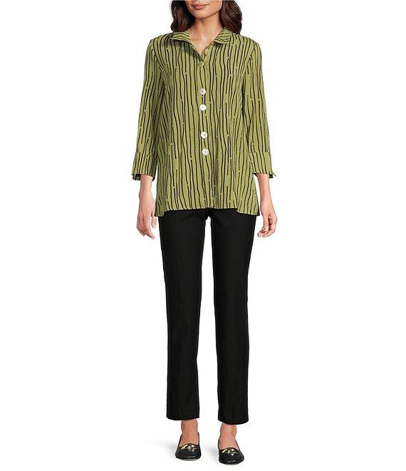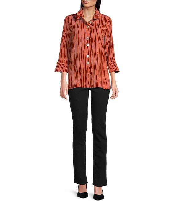Ali Miles Crinkle Woven Abstract Stripe Wire Collar 3/4 Sleeve Button Front Tunic
