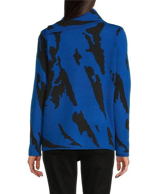 From Ali Miles, this sweater features: Jacquard knit fabrication Split cowl neck with zipper Long sleeves Abstract stripe pattern Straight hemline Pop-over construction Approx. 25" length Rayon/polyester/nylon Machine wash cold/tumble dry Imported.