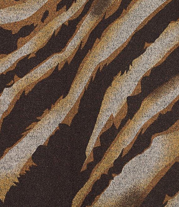 Ali Miles Knit Zebra Print Point Collar Long Roll-Tab Sleeve Quarter-Zip Tunic