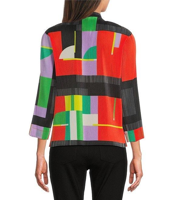 From Ali Miles Petite, this shirt features: Crinkle pleated textured fabrication Stand collar neckline 3/4 cuff sleeves Geo multi print Straight hem Button-front closure Approx. 23" length Polyester Machine wash cold/line dry Imported.