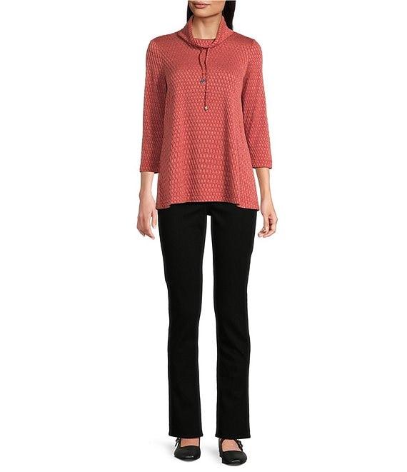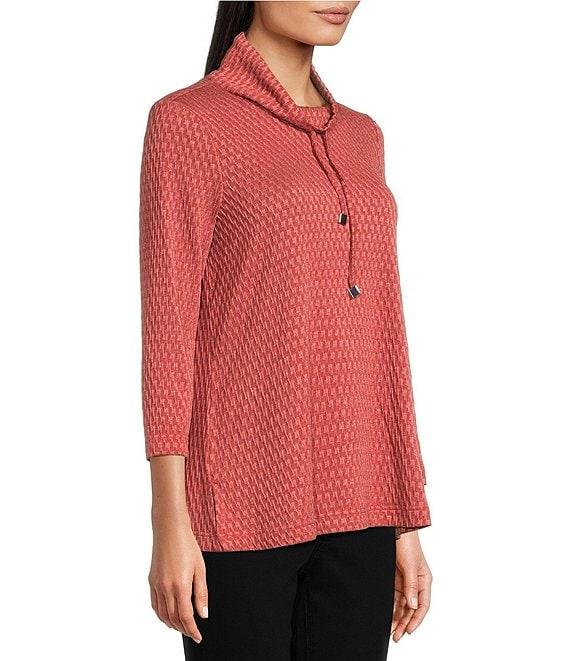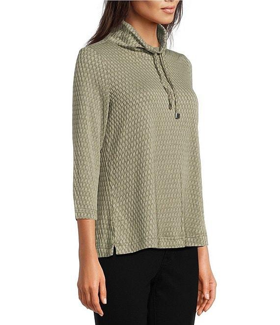 Ali Miles Petite Size Textured Solid Knit Cowl Neck 3/4 Sleeve Tunic