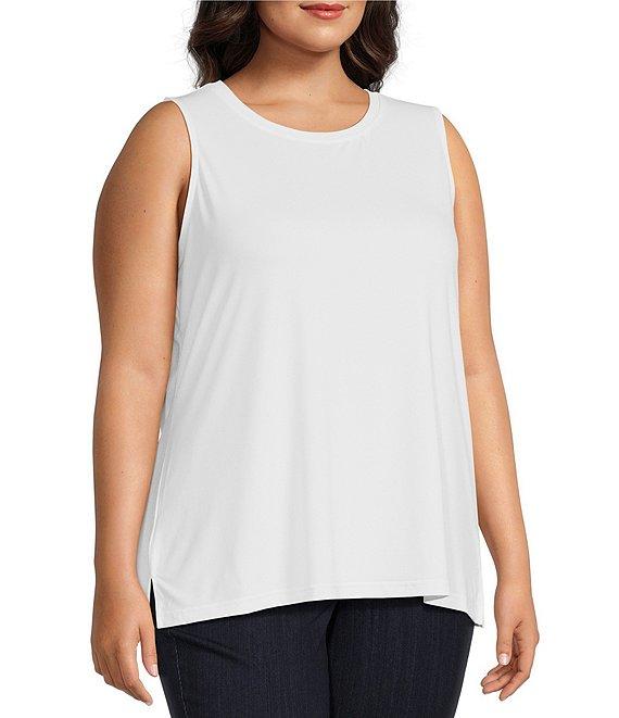 Ali Miles Plus Size Crepe Lux Crew Neck Sleeveless Tank