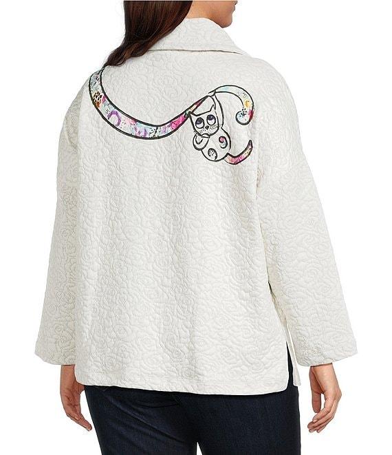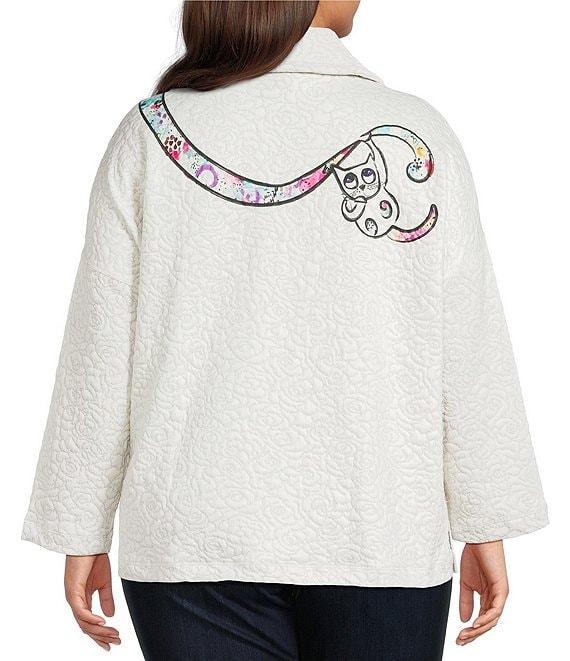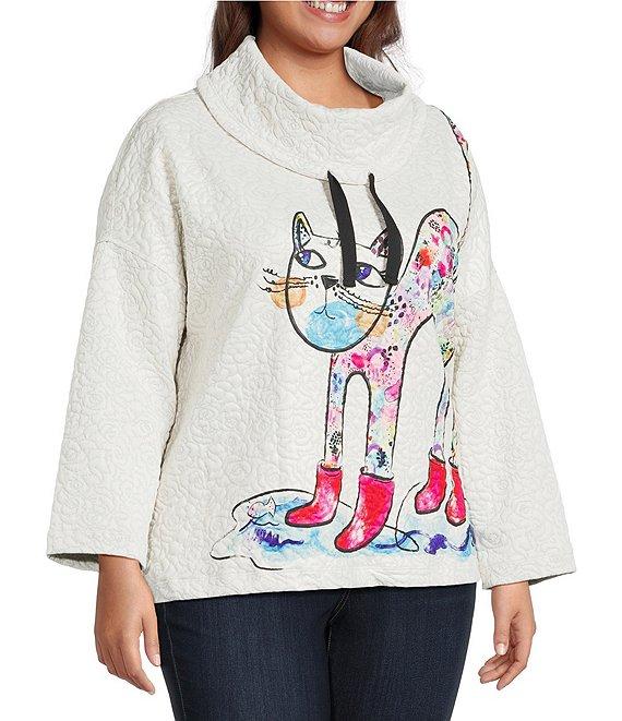Ali Miles Plus Size Novelty Animal Cat Print Quilted Knit Popover Tunic