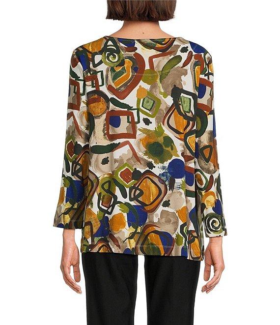Ali Miles Printed Round Neck 3/4 Sleeve Tunic